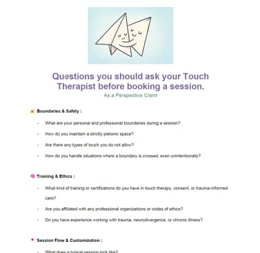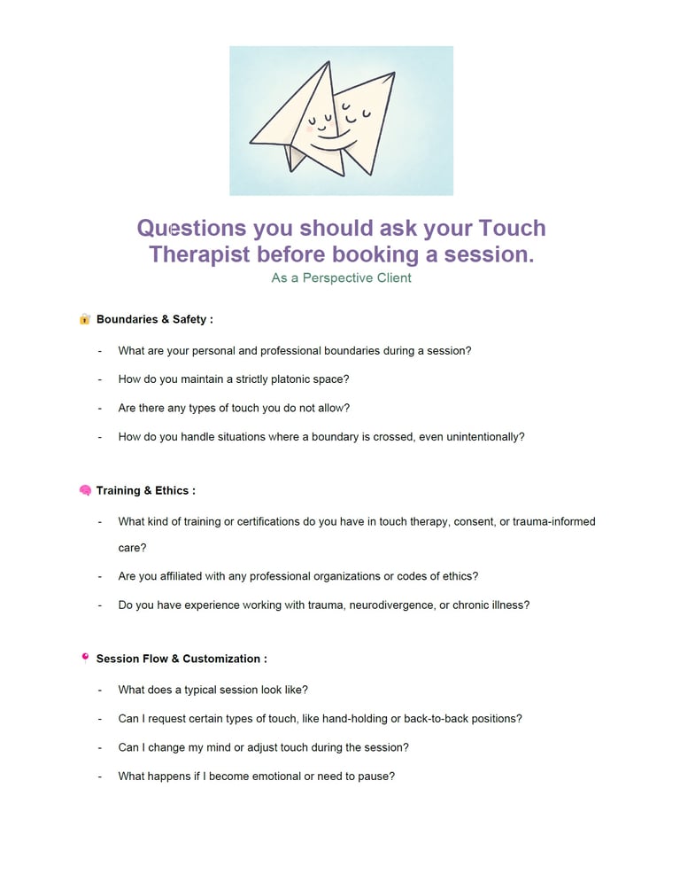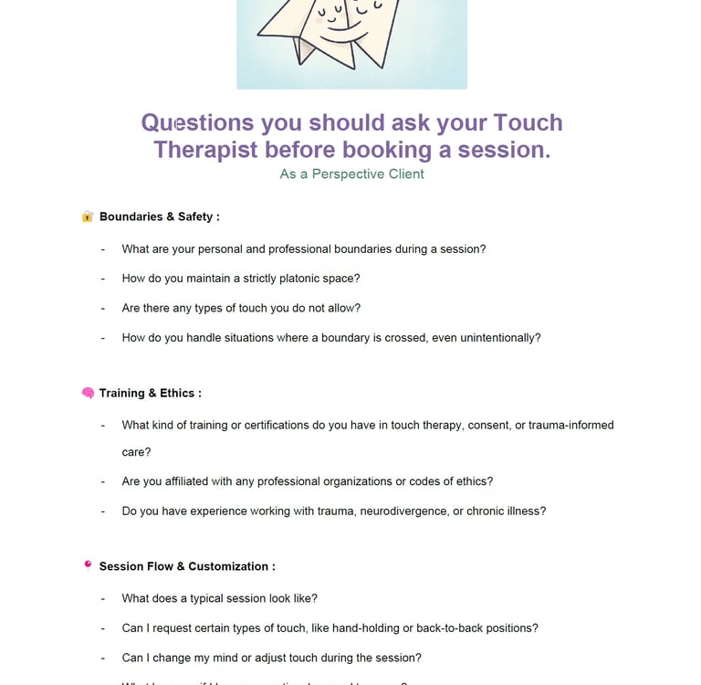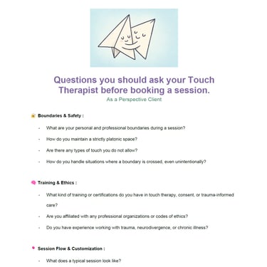 Questions you should ask your Touch Therapist before booking a session - a Perspective Client List.